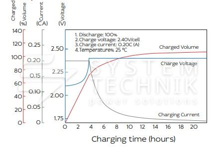- Номинальное напряжение: 2В. Максимально допустимый ток заряда: 0,2C;