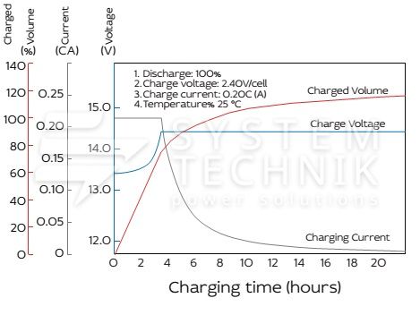 - Срок хранения без подзаряда: 6 мес. при 25°C;