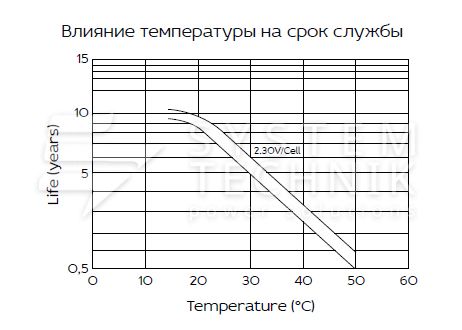 - Срок хранения без подзаряда: 6 мес. при 25°C;