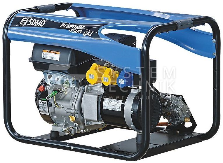 Трехфазная газовая электростанция в шумозащитном кожухе SDMO PERFORM 4500 GAZ изготовлена на базе двигателя Kohler CH 395 с воздушным охлаждением. Генератор предназначен для организации автономного электроснабжения домов, небольших коммерческих, социальных и бытовых объектов.